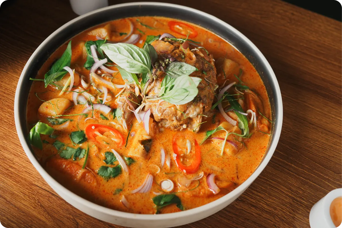 • Rich coconut curries layered with spice, herbs, and aroma