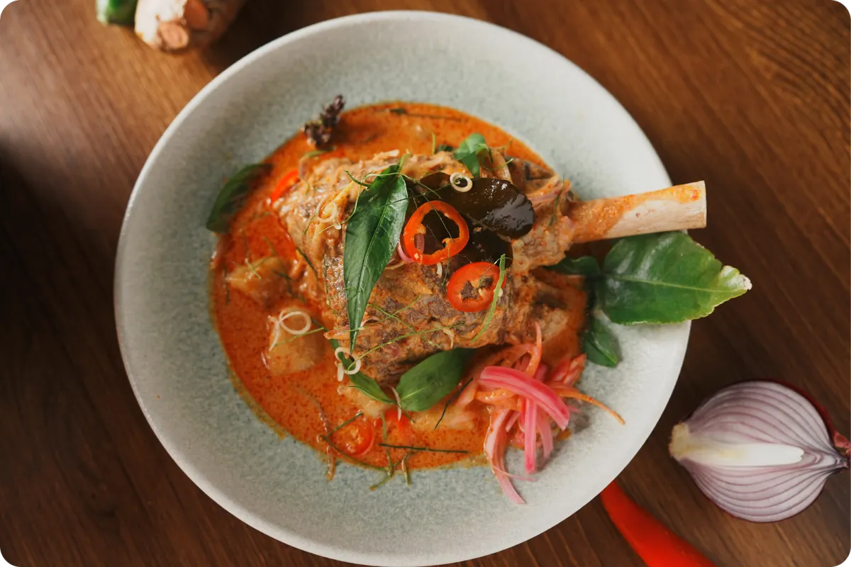 Our signature slow-cooked wagyu beef cheek, simmered in a rich, aromatic red curry and served with fragrant jasmine rice. For just $25.80 when purchased with a beverage.